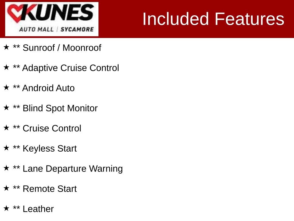 While we make every effort to ensure the data listed here is correct, there may be instances where some of the factory rebates, incentives, options or vehicle features may be listed incorrectly as we get data from multiple data sources. PLEASE MAKE SURE to confirm the details of this vehicle with the dealer to ensure its accuracy. Dealer cannot be held liable for data that is listed incorrectly. * MSRP is the Manufacturer's Suggested Retail Price (MSRP) of the vehicle. It does not include any tax, title, license or $367.70 documentary service fee. Consult the dealer for fees, payments and complete details. Consumers, please be aware that the above advertised price assumes you are purchasing the vehicle from the Kunes Auto Group dealership where it is listed as being offered for sale. If the vehicle is transferred from one location to another, a transfer fee for this transportation of $300 will be added to the purchase transaction. If you would like to purchase such vehicle without paying a transfer fee, you can take delivery of the vehicle at the store it is listed as being sold from and avoid the additional transfer fee. Shipping fees vary depending on location, contact dealer for shipping details and costs.