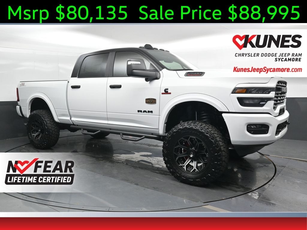 2025 Ram 2500 Big Horn 5" LIFTED DEADWOOD EDITION 5" LIFTED DEADWOOD EDITION 4WD 8-Speed Automatic 6.7L I6 **20" SHERROD RIMS**, **CUSTOM LEATHER INTERIOR**, **HIGH SPEED STATIC BALANCING**, **5" SHERROD PRIVATE LABEL LIFT**, **CUSTOM STEP BARS**, **CUSTOM BLACKED OUT ROOF**, **CALIBRATION TESTED**, **CUSTOM HIGH TEMP BRAKE CALIPERS**, **HYDRO DIPPED INTERIOR ACCENT TRIM**, **ALL TERRAIN TIRES**, **DEADWOOD LOGOS THROUGHOUT**, 12" Touchscreen Display, 2nd Row In Floor Storage Bins, 4G LTE Wi-Fi Hot Spot, 5th Wheel/Gooseneck Towing Prep Group, 9 Alpine Speakers w/Subwoofer, Air Conditioning ATC w/Dual Zone Control, Alexa Built-In, Anti-Spin Differential Rear Axle, Apple CarPlay, Auto Power-Folding Mirrors, Auto-Dimming Rear-View Mirror, Big Horn Level 1 Plus Equipment Group, Black Exterior Mirrors, Black Exterior Truck Badging, Black Interior Accents, Body Color Grille Surround, Cold Weather Group, Connected Travel & Traffic Services, Connectivity - US/Canada, Dual Glove Boxes, Emergency Vehicle Alert System (EVAS), Engine Block Heater, Exterior Mirrors Courtesy Lamps, Exterior Mirrors w/Heating Element, Exterior Mirrors w/Supplemental Signals, Foam Bottle Insert (Door Trim Panel), Footwell Courtesy Lamp, Forward & Reverse Utility Lights, Global Telematics Box Module (TBM), Gloss Black Nostrils/Mic Black Grille, Glove Box Lamp, Google Android Auto, GPS Antenna Input, GPS Navigation, HD Radio, Heated Front Seats, Heated Seats & Wheel Group, Heated Steering Wheel, Integrated Voice Command w/Bluetooth, LED Bed Lighting, Locking Lower Glove Box, Luxury Steering Wheel, Mirror Running Lights, MOPAR Deployable Bed Step, MOPAR Spray In Bedliner, MOPAR Winter Front Grille Cover, Night Edition, Off-Road Info Pages, Painted Front Bumper, Painted Rear Bumper, Power Adjust Mirrors, Power Adjustable Convex Aux Mirrors, Power Heated Folding Telescopic Mirrors, Power Telescoping Mirrors, Quick Order Package 24Z Big Horn, Radio: Uconnect 5 Nav w/12.0" Display, Rear Dome w/On/Off Switch Lamp, Remote Start System, Selectable Tire Fill Alert, SiriusXM Radio Service, SiriusXM w/360L, Steering Wheel Mounted Audio Controls, Trailer Reverse Guidance, Trailer Tire Pressure Monitoring System, Trailer Tow Pages.
