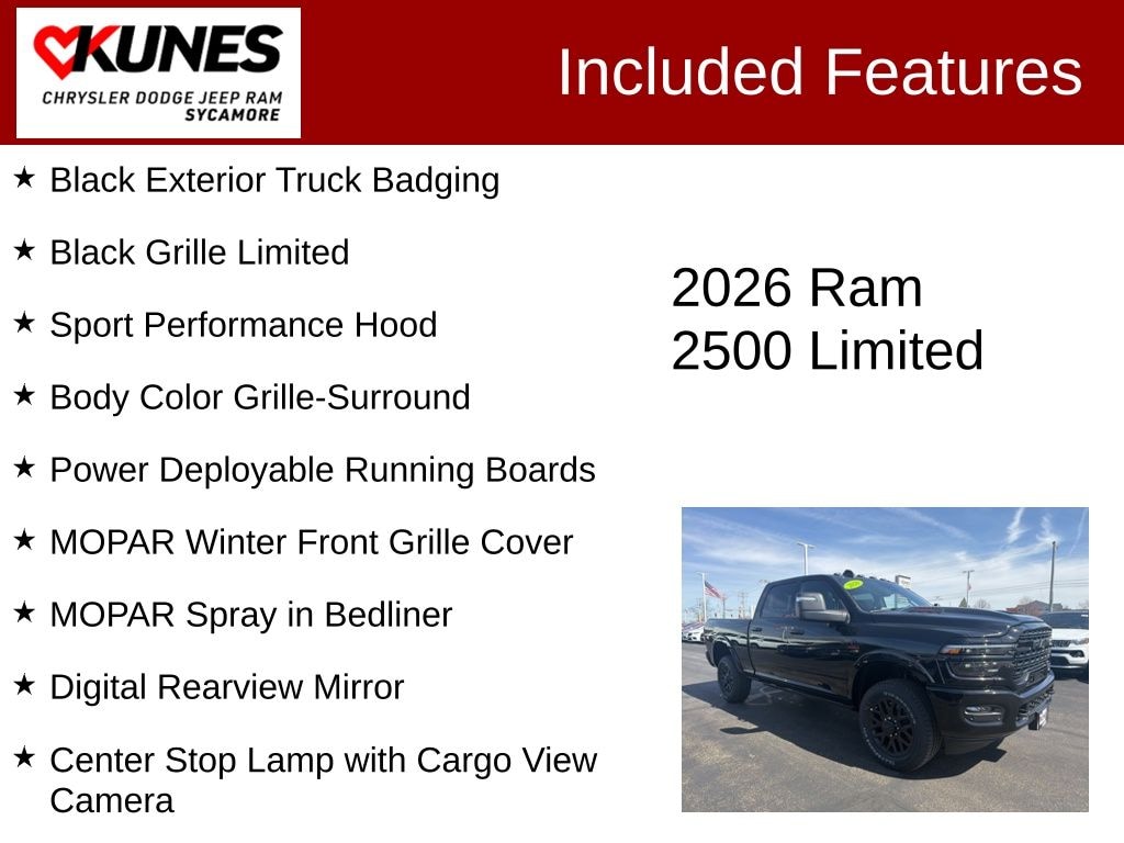 Whether you're tackling tough jobs or seeking a premium driving experience, the 2026 Ram 2500 Limited is the perfect choice. Experience the uncompromising power, unparalleled capability, and refined luxury that make this vehicle a true standout in its class. We invite you to visit our showroom and discover the exceptional capabilities of the 2026 Ram 2500 Limited for yourself. Price includes: $1000 - 2026 National Bonus Cash . Exp. 04/30/2026