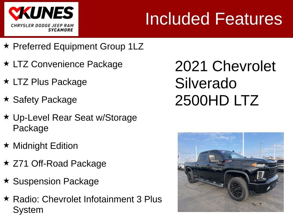 Rest assured, this Silverado 2500HD has been thoroughly inspected and certified, ensuring it meets the highest standards of quality and reliability. With its exceptional performance, unparalleled versatility, and premium features, the 2021 Chevrolet Silverado 2500HD LTZ MIDNIGHT EDITION is the ultimate choice for discerning truck enthusiasts.