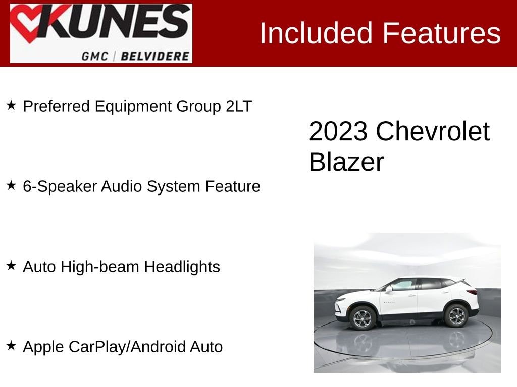 Certified. 2023 Chevrolet Blazer LT LT 6-Speaker Audio System Feature, Apple CarPlay/Android Auto, Auto High-beam Headlights, Preferred Equipment Group 2LT. Summit White