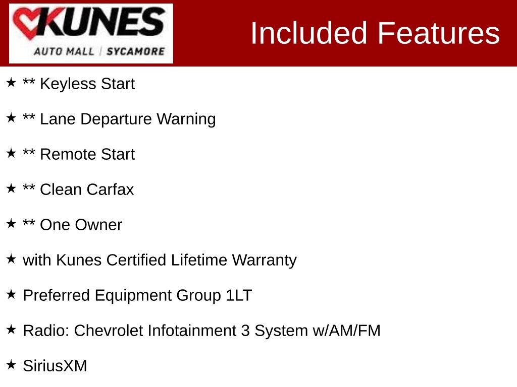 While we make every effort to ensure the data listed here is correct, there may be instances where some of the factory rebates, incentives, options or vehicle features may be listed incorrectly as we get data from multiple data sources. PLEASE MAKE SURE to confirm the details of this vehicle with the dealer to ensure its accuracy. Dealer cannot be held liable for data that is listed incorrectly. * MSRP is the Manufacturer's Suggested Retail Price (MSRP) of the vehicle. It does not include any tax, title, license or $367.70 documentary service fee. Consult the dealer for fees, payments and complete details. Consumers, please be aware that the above advertised price assumes you are purchasing the vehicle from the Kunes Auto Group dealership where it is listed as being offered for sale. If the vehicle is transferred from one location to another, a transfer fee for this transportation of $300 will be added to the purchase transaction. If you would like to purchase such vehicle without paying a transfer fee, you can take delivery of the vehicle at the store it is listed as being sold from and avoid the additional transfer fee. Shipping fees vary depending on location, contact dealer for shipping details and costs.