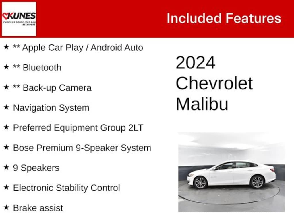 2024 Chevrolet Malibu LT 2LT Summit White FWD 1.5L DOHC