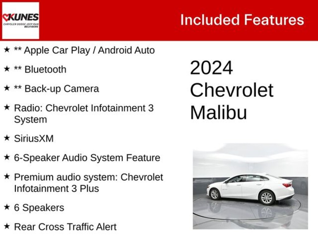Recent Arrival! 2024 Chevrolet Malibu LT 1LT 1LT FWD ** Apple Car Play / Android Auto, ** Bluetooth, ** Back-up Camera, 6 Speakers, 6-Speaker Audio System Feature, Premium audio system: Chevrolet Infotainment 3 Plus, Radio: Chevrolet Infotainment 3 System, Rear Cross Traffic Alert, SiriusXM, Wireless Apple CarPlay/Android Auto.