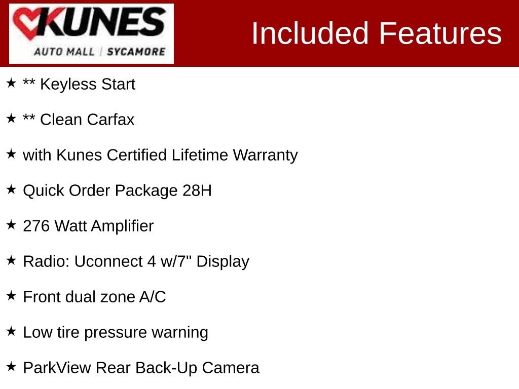 While we make every effort to ensure the data listed here is correct, there may be instances where some of the factory rebates, incentives, options or vehicle features may be listed incorrectly as we get data from multiple data sources. PLEASE MAKE SURE to confirm the details of this vehicle with the dealer to ensure its accuracy. Dealer cannot be held liable for data that is listed incorrectly. * MSRP is the Manufacturer's Suggested Retail Price (MSRP) of the vehicle. It does not include any tax, title, license or $367.70 documentary service fee. Consult the dealer for fees, payments and complete details. Consumers, please be aware that the above advertised price assumes you are purchasing the vehicle from the Kunes Auto Group dealership where it is listed as being offered for sale. If the vehicle is transferred from one location to another, a transfer fee for this transportation of $300 will be added to the purchase transaction. If you would like to purchase such vehicle without paying a transfer fee, you can take delivery of the vehicle at the store it is listed as being sold from and avoid the additional transfer fee. Shipping fees vary depending on location, contact dealer for shipping details and costs.