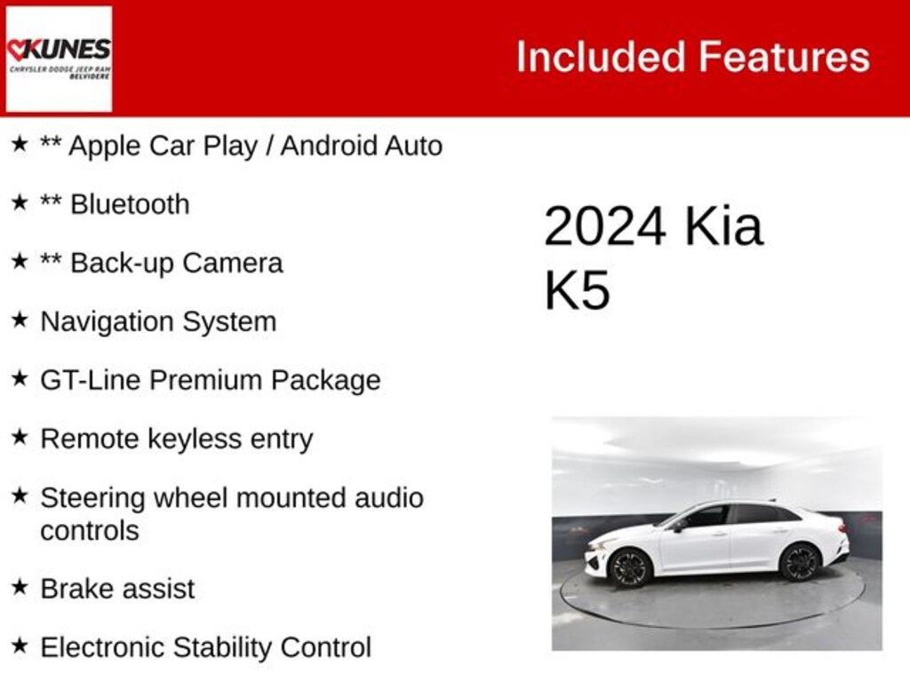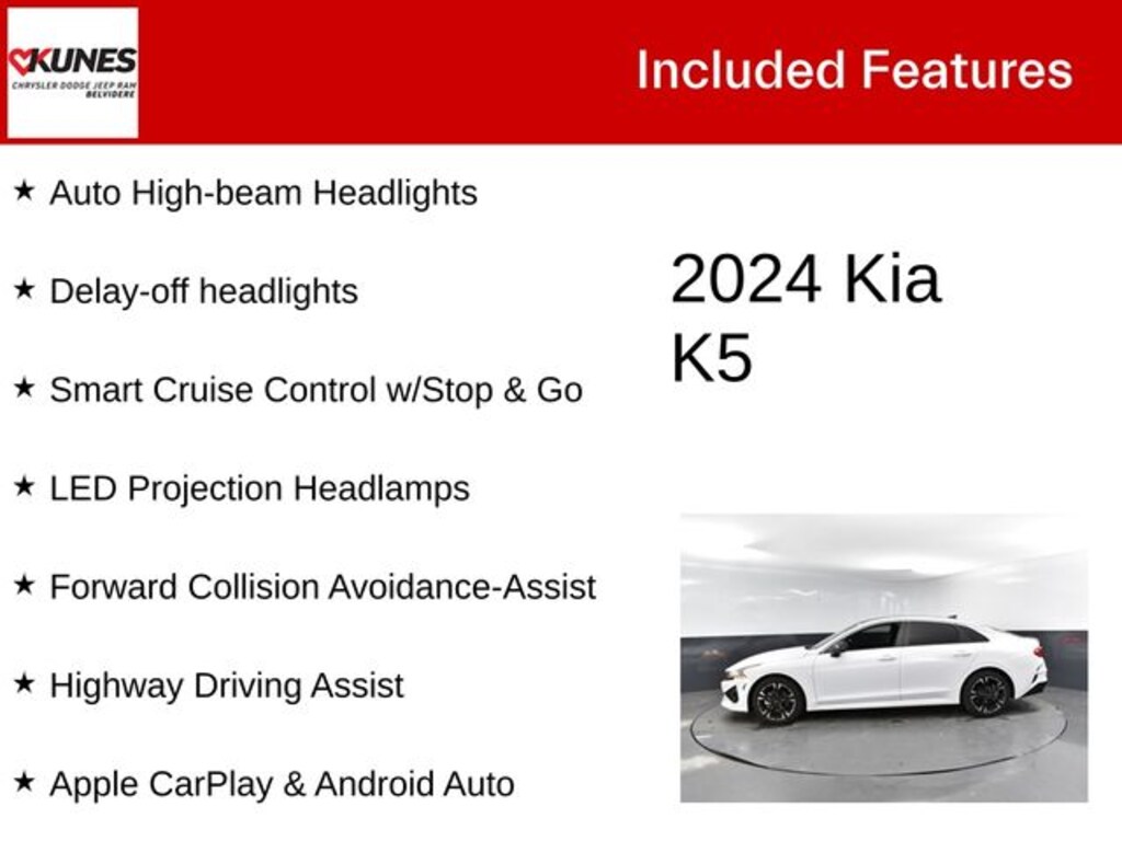 2024 Kia K5 GT-Line Glacial White Pearl FWD 1.6L I4 DGI Turbocharged DOHC 16V LEV3-ULEV70 180hp