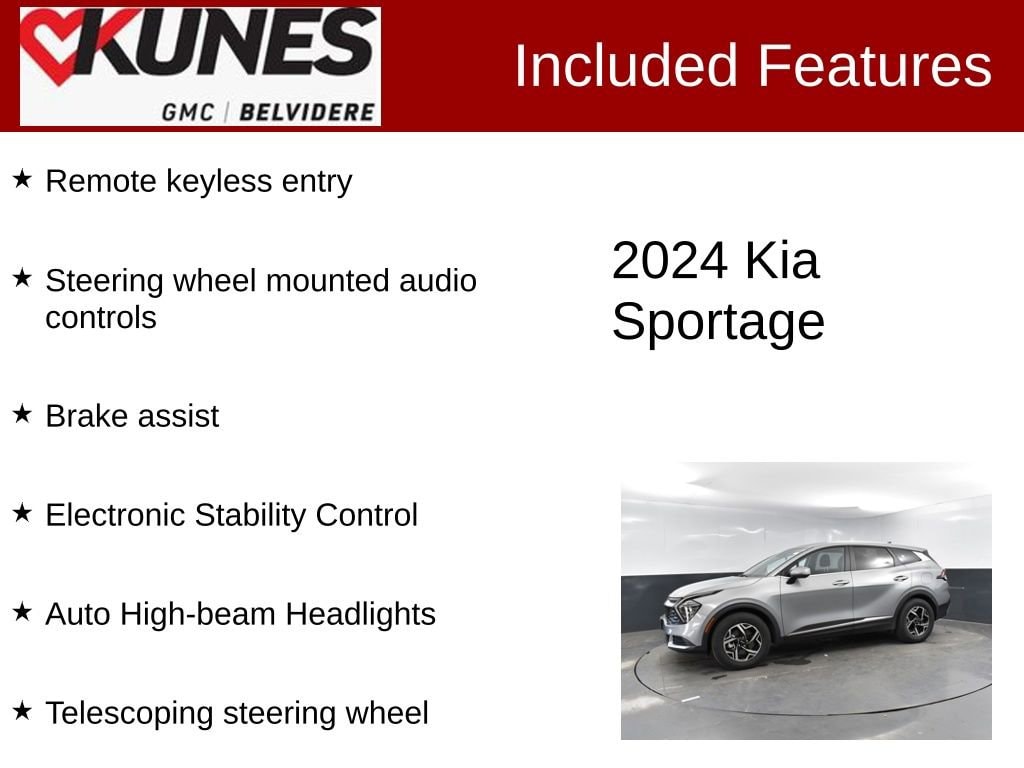 Certified. 2024 Kia Sportage LX LX Auto High-beam Headlights, Brake assist, Electronic Stability Control, Remote keyless entry, Steering wheel mounted audio controls, Telescoping steering wheel. Steel Gray