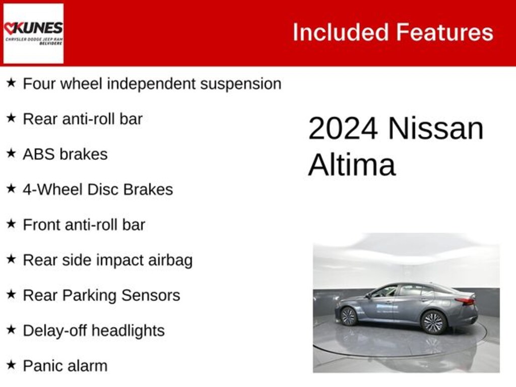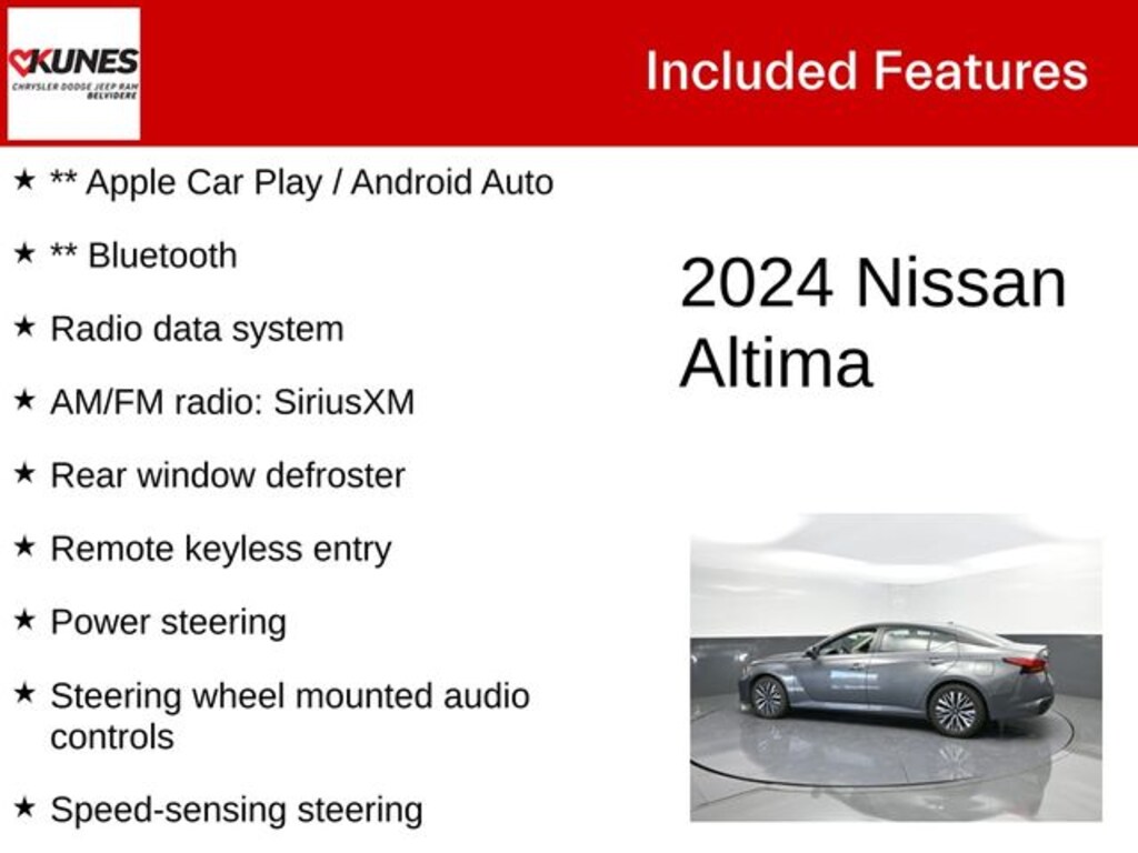 Recent Arrival! 2024 Nissan Altima 2.5 SV FWD ** Apple Car Play / Android Auto, ** Bluetooth, 4-Wheel Disc Brakes, ABS brakes, AM/FM radio: SiriusXM, Bumpers: body-color, Delay-off headlights, Driver door bin, Driver vanity mirror, Four wheel independent suspension, Front anti-roll bar, Front Bucket Seats, Front Center Armrest, Front reading lights, Illuminated entry, Outside temperature display, Overhead console, Panic alarm, Passenger door bin, Passenger vanity mirror, Power door mirrors, Power steering, Radio data system, Rear anti-roll bar, Rear Parking Sensors, Rear seat center armrest, Rear side impact airbag, Rear window defroster, Remote keyless entry, Speed-sensing steering, Split folding rear seat, Steering wheel mounted audio controls, Tachometer, Tilt steering wheel, Trip computer, Variably intermittent wipers.