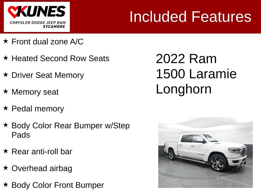The 2022 Ram 1500 Laramie Longhorn has been thoroughly inspected and certified, ensuring that it meets the highest standards of quality and reliability. With low mileage and a well-maintained history, this vehicle is ready to take you on your next adventure with confidence and style.